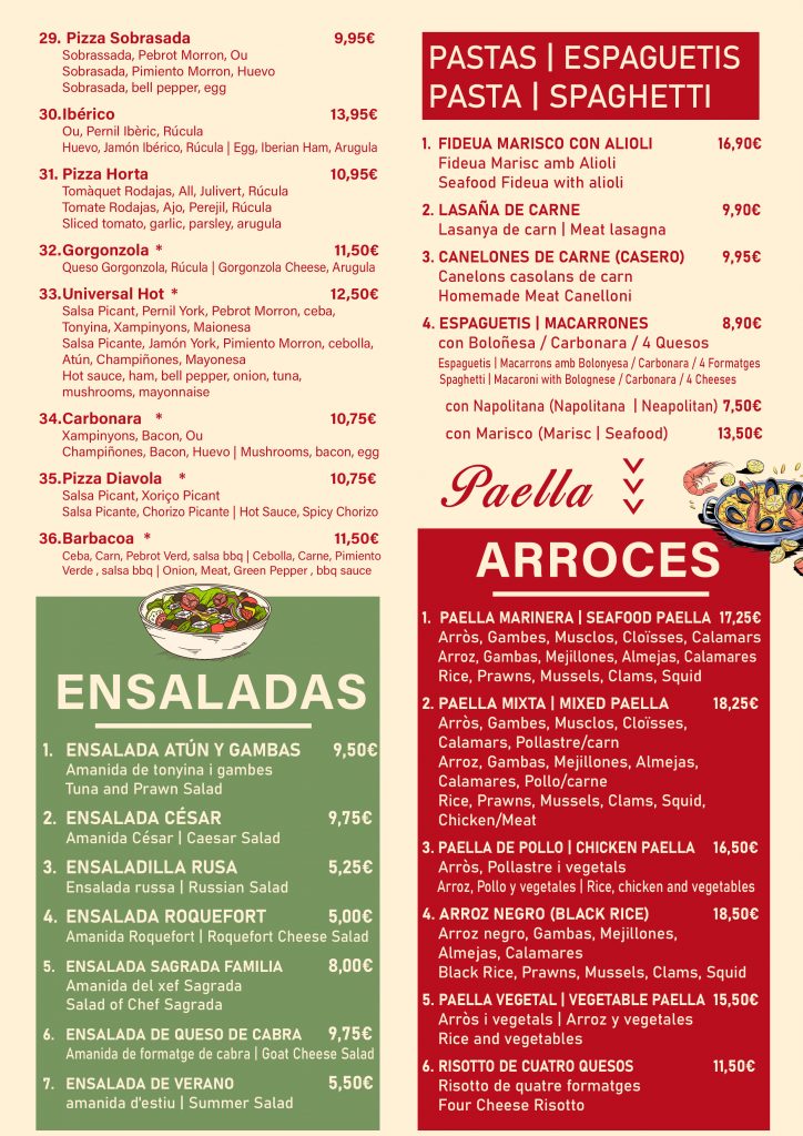 Vive una experiencia gastronómica única en el corazón de Barcelona. Deléitate con auténticas Tapas, Paellas, Pizzas Artesanales, Carnes a la Brasa, Pescados frescos, Burgers y mucho más.